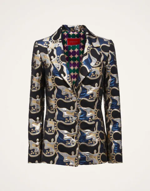 If the next Bond is a woman, she’s wearing this blazer. An updated take on a seventies silhouette, the 24/7 Jacket has a structured shoulder and slightly tapered waist for a fiercely flattering fit. Cut in our shimmering sumptuous jacquard, pop this beauty over a black top and trousers for an easy evening outfit or pair it with our matching Oscar Skirt for a meravigliosa maximalist moment.