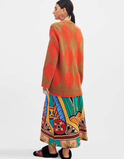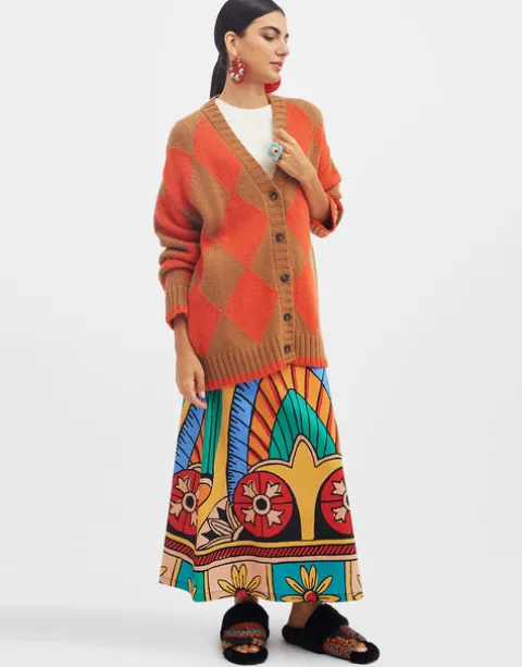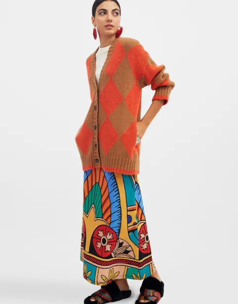 We’re calling it – this Autumn is all about Argyle. Our fan-favorite family has expanded to include this color-blocked cardigan crafted from a sumptuous alpaca blend which has been stitched together using our intricate intarsia technique. Hitting just below the bum, this is a deluxe layering piece that has just as much impact in the streets as on the sofa. You could keep it classic, wrapping it over your favorite tee and denim ensemble, but we love it with our short-sleeved TGIF Dress and a pair of our power-printed tights. It might be the chicest cardi we’ve crafted to date (like, “cottage-core” but if that cottage were in the Piedmont mountains.)
