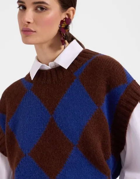 What statement sweater feels better than one crafted from soft bouclè wool? Our Argyle Gilet is made in Italy from a texture-fest alpaca wool blend and, in this vibrant green and black color combo, is designed to bring high vibes to winter wardrobes in these vibrant happy hues. With a mock neck and slits on the hips, it’s a stylist’s dream with its mannish oversized fit that brings plenty of swag to pretty print dresses or black turtlenecks alike.