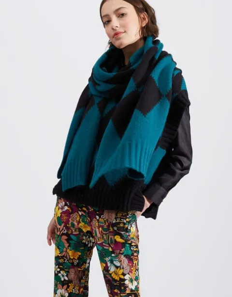 Two words: color therapy. Our Argyle Scarf brings it in buckets with this vivid green and black color cocktail and bold graphic pattern that totally catches the eye. Long and cozy in luxurious Italian bouclè wool, fling it over your favourite coat and consider your vibrations raised.