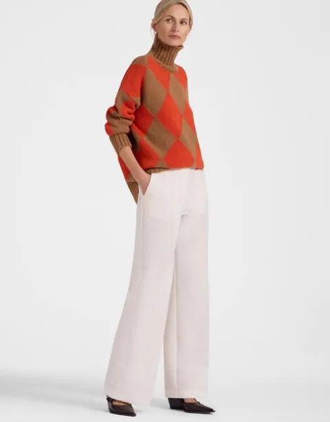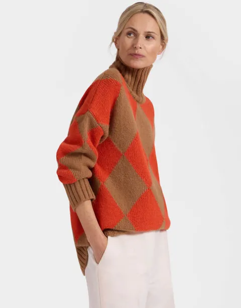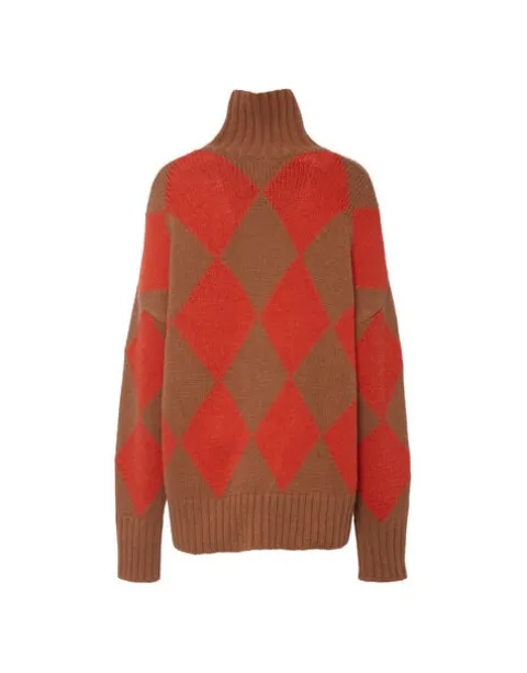 In vibrant intarsia hues and luxurious alpaca wool bouclè, this Argyle Sweater is the definition of a feel-good knit. It has tons of comfy details to cozy down in, from its high turtleneck you can leave up or fold down to its strokable texture and long oversized fit. Great with jeans or printed skirts for the weekend, even better with cashmere socks by the fire.