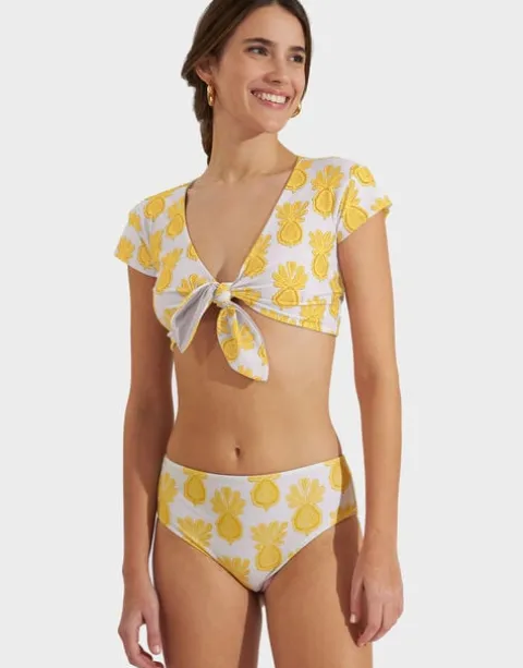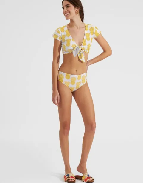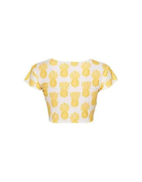 Is it a top? Is it a bikini? The Bardot Top brings ready-to-wear to the beach, baby! Cut from luxurious Italian Lycra, the Bardot bikini top provides ample coverage AND still looks chic. In this zingy Pineapple motif, wear it with our matching Pull-Up Shorts on your sun lounger or our floaty Ariel Skirt for aperitivo at sunset. Enjoy!