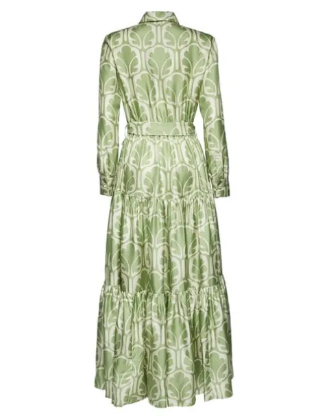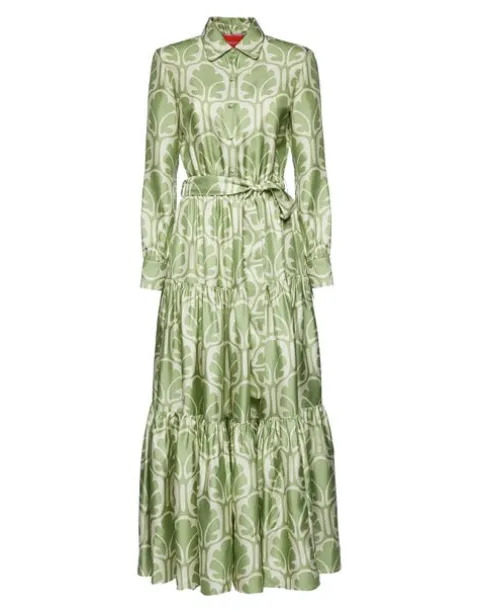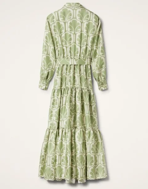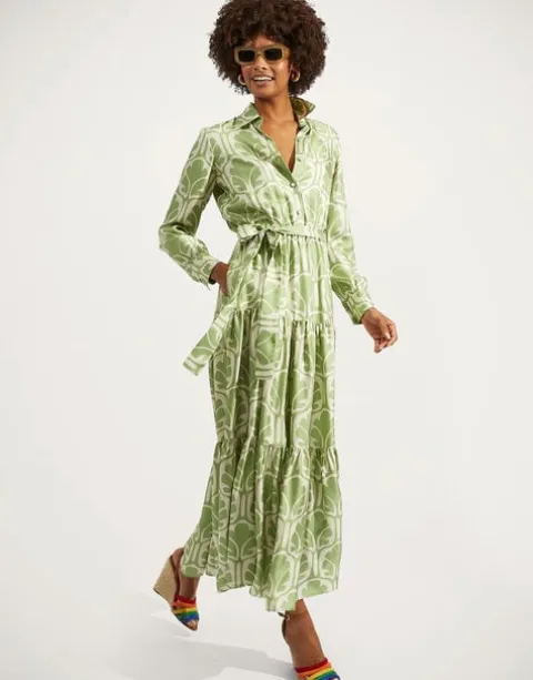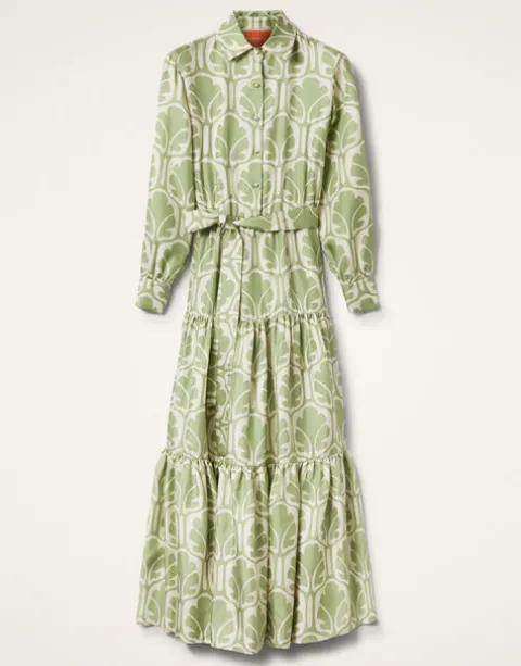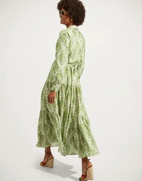 This whimsical maxi dress is infused with a summer mood that takes us to a seaside sunset sipping Bellinis. So popular it’s now an LDJ icon we bring back every season, the Bellini silhouette balances a snappy collar with a flowing three-tier skirt and is prime for summer’s most fabulous RSVPs crafted in our glossy silk twill. Cinch the belt for more shape at the waist!