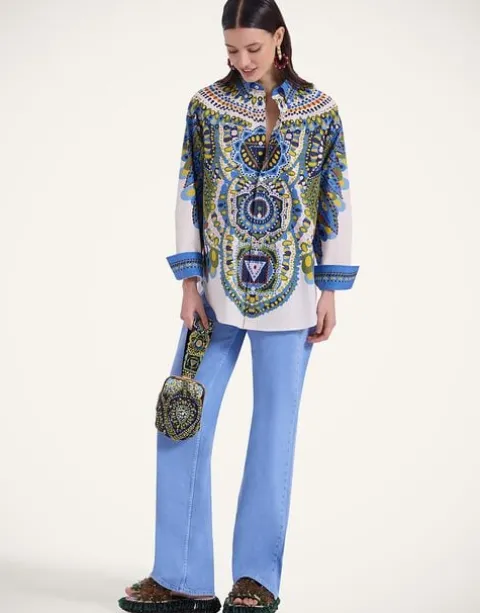 We’ll go ahead and say it – this just might be the perfect shirt. One that’s tailored in all the right places but still oversized enough to feel effortlessly laid back. Crafted in crisp cotton poplin this beauty pops with pretty much anything – your favourite pair of jeans, a printed Pencil Skirt, over a bathing suit, or nothing at all!. Just keep this one close to the chest….your boyfriend will want to steal it, we guarantee.