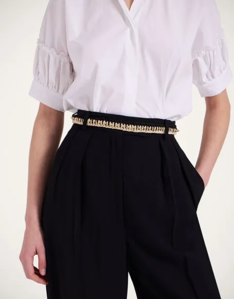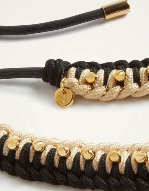 Belts are back, bella! And this beauty delivers an extra punch crafted from two interlocking contrast colored braids, perfect for accentuating any monochrome look.