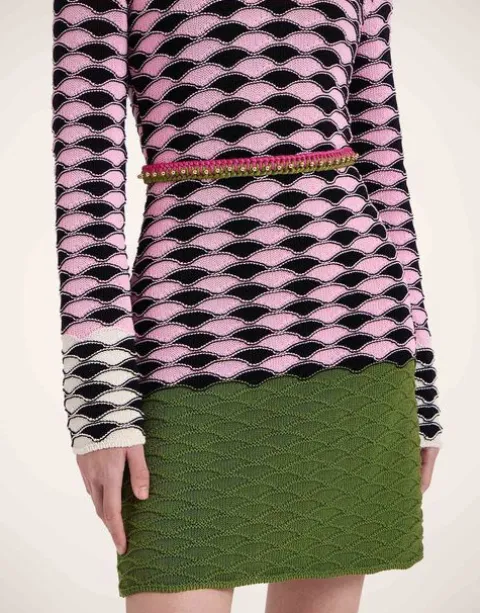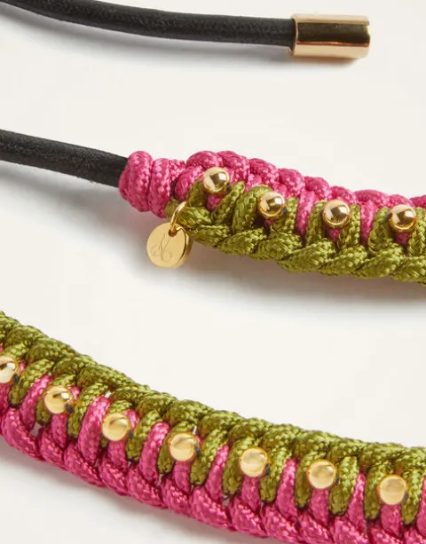 Belts are back, bella! And this beauty delivers an extra punch crafted from two interlocking contrast colored braids, perfect for accentuating any monochrome look.