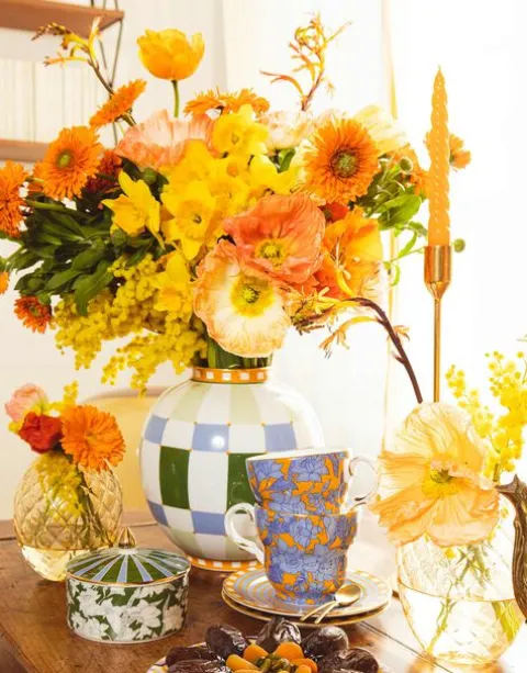 Our Big Teacup is a hug in a cup, arriving supersized and in the perfect shape for wrapping your hands around on a cold morning. Inspired by Italy’s opulent capital of amore, Rome, this set comprises two boldly contrasting prints over one cup and one saucer for a love affair between equally high-vibe patterns. For extra feel-good energy we hand-painted each rim in 18K gold and provided you an entire Dessert Plate set to match for tasty tea-time tabletop.