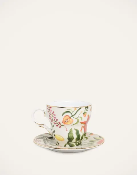 Mythical, enchanting and busting with feminine energy, let our Big Mama teacup raise your vibration with her supersized shape and heart-pulsing Eden print. Crafted from fine porcelain by the Italian greats Ancap, this shapely set comprises one cup and one large saucer and is finished with hand-painted 18k gold rims, nothing less than our goddesses deserve. Oh, and they go in the dishwasher, too.