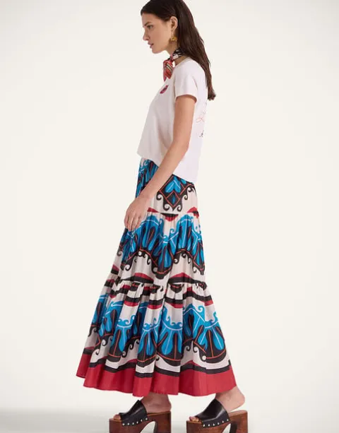 The Big Skirt’s voluminous tiers of printed fabric can take it from a casual outing to a major occasion-moment in a snap. Pockets, an elasticated waistband and an oversized fit make it a weekday to weekend winner to throw on with a white tee and blazer or dial things up with a patterned Turtleneck for a molto maximalist hit. It’s extra beguiling in this Pacific print, designed exclusively for our collection with L.A.-based design brand, Mother, particularly in this crisp cotton voile