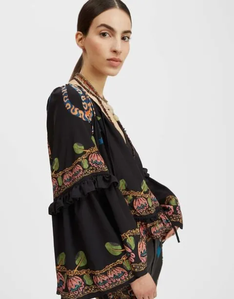 Just like the name suggests, this beauty was built for dolce vita daydreams. As part of our Chiara Totire and Estelle Pigault “Eden” Collection, this super romantic shape already comes style-icon approved. In sumptuous crepe de chine, she’s diaphanous and dramatic, pairing beautifully with slinky city bottoms or jeans for a print perfect primavera look.