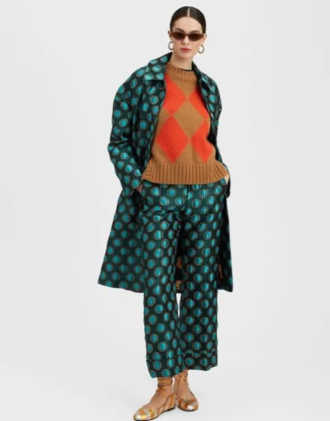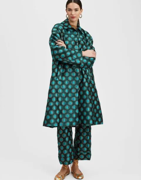 A coat so opulent no-one will care what you’ve got on underneath. Featuring a rounded collar, side pockets and generous swing-cut hemline, it sits perfectly over all your cold-weather clothes – even the bulkiest of sweaters are no match. In this opulent Winter Sun jacquard, it’ll glide you through all of winter’s most fabulous invites with dazzle and charm no matter how tricky the dress code. We’re wearing it with the matching Big Dress underneath.