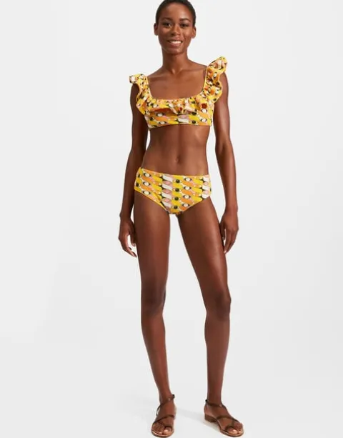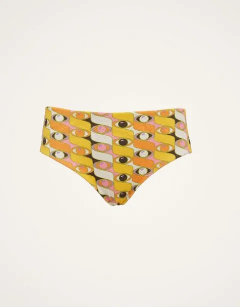 Find back-up for your butt in our ample coverage Bow Briefs. Not as gigantic as our Giga Briefs, and not as small as our Bow style, this Boy design has a slightly higher rise on the tummy and cuts forgivingly on the butt. These are made in our cool, textured piquet Lycra made on the shores of Lake Como – give them their day in the sun with our bellissimo Bardot Top or fun-loving Ruffle Bikini to match!