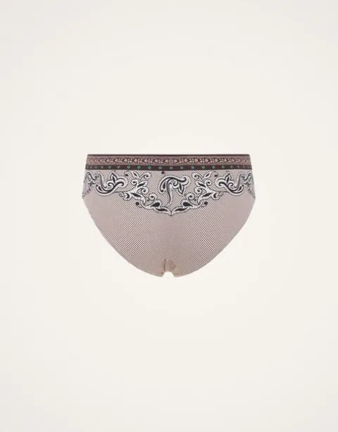 Find back-up for your butt in our ample coverage Bow Briefs. Not as gigantic as our Giga Briefs, and not as small as our Bow style, this Boy design has a slightly higher rise on the tummy and cuts forgivingly on the butt. Crafted in our luxurious and long-lasting Supreme Lycra, they arrive in this majestic Mirage print for your next ultra chic pool plunge.