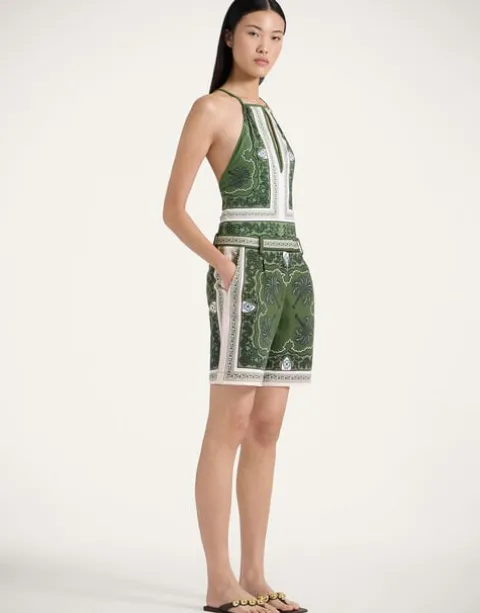Never understood boyfriend shorts? Inspired by the queen of Milanese cool Viviana Volpicella, these have all the mannish construction details you’d expect – fly, pockets, belt loops – but in our hand-placed Mirage print hey feel totally feminine too. Cut from light and breezy cotton, they are a smidge oversized in a classic Bermuda shape. Do as Viviana would and wear them with a man’s white shirt unbuttoned over a bikini and take them somewhere hot, hot, hot.