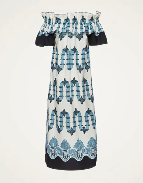 The name says it all – this is the dream dress you don after tumbling out of bed at your Sicilian villa for an oceanside espresso. Off the shoulder ruffles add romance to this easy all day option, cut in our breezy, soft cotton poplin for high summer sojourns along the coastline. This sweet summer staple is the perfect base for added bling, and is as ravishing on our petite beauties as it is our leggy LDJ ladies.