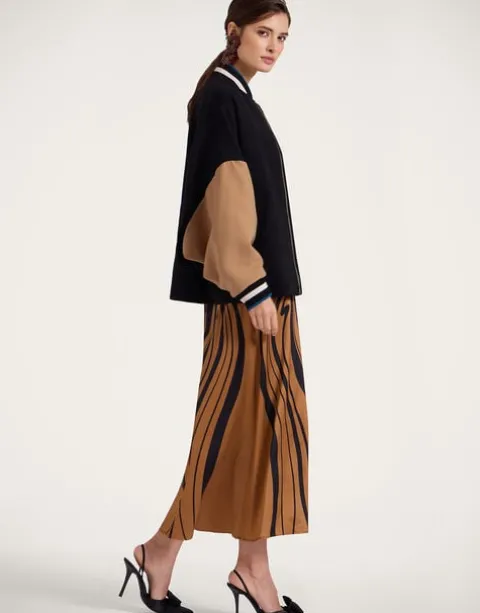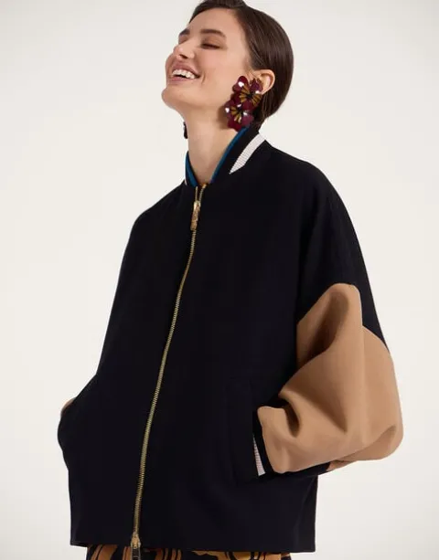 Debbie Harry called – she wants her bomber back. With a slouchy but structured fit with a slightly high-low hem and ribbed knit collar and cuff, this more tailored take on a classic jacket shape is how Italians do oversized outerwear. The decadence is in the details on this beauty, bella – note the intricate scarab detail on the zipper.