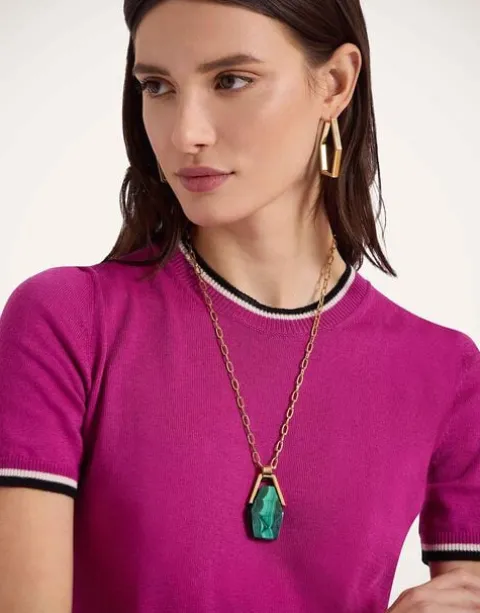 Do you need to speak to the manager? This tee may be soft but she certainly means business. Crafted from ribbed cashmere-blend with a contrast lurex at the cuff and collar she’s a form-fitting firecracker of an everyday item.