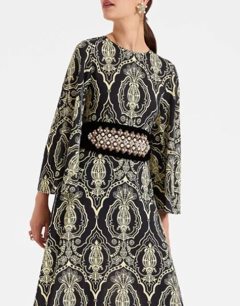 Named for the uber stylish Renaissance icon Caterina de Medici, this belt is our favorite new multi-use accessory. Crafted from sumptuous black Italian velvet and embroidered with gems across its center, she arrives in a simple ribbon tie composition, so you can cinch your waist to your desired level of va va voom. Or, do as we do in the LDJ HQ and wear her as a headband, like a bejeweled velvet crown.