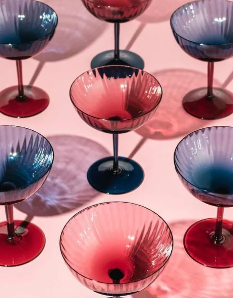 What you really see here, babe, is two mini masterpieces, unique and hand-blown by the world-class Venetian glassmakers Salviati. Fashioned from midnight blue and soft violet shades of glass with an insanely masterful blown stem and gorgeous shape cup, they will keep your guests talking long after the party is over. Each features the unique signs and marks of its artisanal production methods: those rings and bubbles are happy proof that they have been created entirely by human hands. Mix with the violet set for the chicest at-home bar around.
