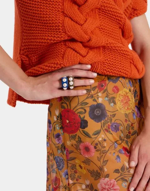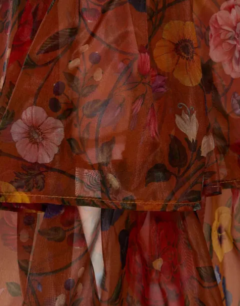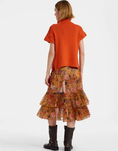 It’s a new era, amore – “sheer” is now as synonymous with sophistication as it is sensuality. This organza stunner is a midi skirt with a maxi attitude, straight through the hips before flaring out into a double-pleated, ruche along the hem. Opt for our flirty floral Botticelli print for a pop of vibration-raising color or our solid black version as a stunning print breaker to one of our Italian merino sweaters.