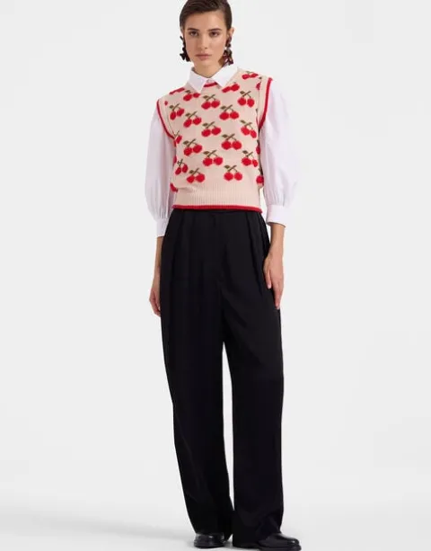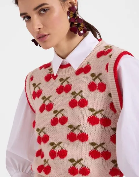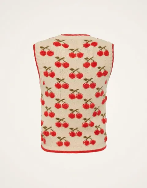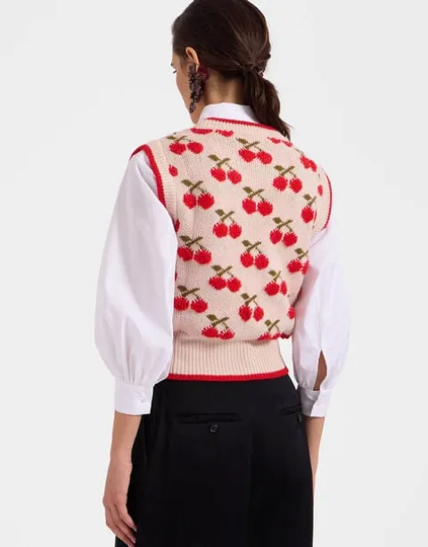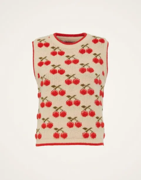 Thought our family of Cherry Knits couldn’t get any cuter? Think again. Perhaps the sweetest of our statement gilets, this soft-as-silk alpaca-blend number comes in new ivory and red colorways, with a flattering scoop neck and waist-skimming hem. Keep it luxuriously laid back layered over a button down or tee with jeans, or lean into the juicy joy and pair it with with the matching scarf and beanie.