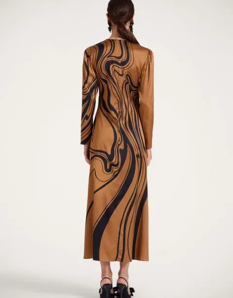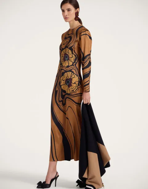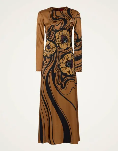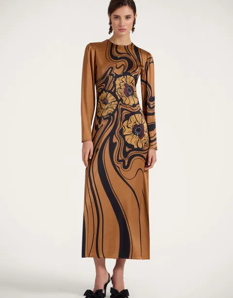 It’s the Long Sleeve Swing Dress you know and love, now in a more sensual, figure-hugging fit. With a curve-celebrating body that flares out at the hips into an ankle-grazing skirt, we crafted this beauty in a drapy Italian satin and hand-placed the ionic LDJ Big Blooms print across her for extra opulence.