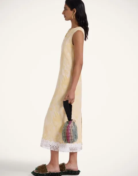 Need a boost? Skip the ginger shot and head straight for this stunner. All about giving you a kick in the happy pants, the Column Dress is a total delight for the senses crafted in textured jacquard. Its straight column shape doesn’t cling and is friendly on all figures, while a slit in the floor-length skirt (at the back) means it’s still good for shimmying.