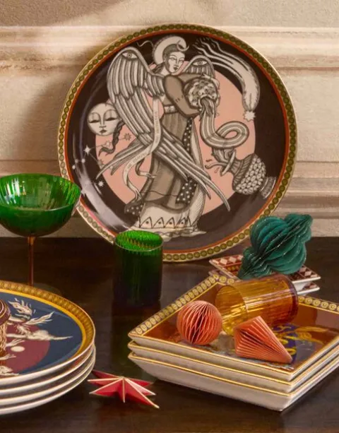 We don’t often think of “temperance” when we list the qualities we aspire to achieve. Yet that calming, harmonising, equilibrating energy is exactly what we need when we feel stressed, anxious, or unmoored. As the prime protector in our Guardians Collection, The Angel is a light-giver, designed not only to delight the eye, but to infuse your home with a little more “pace”. With added 18K-gold adorning this Decorative Plate, this piece is extra special (nothing but the best for our sister angels, right?)Crafted in collaboration with Turin-based artist Elisa Seitzinger, the Guardian Collection features five energy-protecting supernatural stewards;The Unicorn; The Sphinx; The Angel; The Dragon: The Mermaid. With intricate hidden symbols lovingly etched, painted or printed onto each piece, these are more than mere beautiful objects – these are vibration-raising, mood-boosting, positivity-bringing happiness generators. Select the specific Guardian that activates your desired energy, or collect all five for maximum cosmic consciousness.If so moved, feel free to use this mantra with your Guardian item: “I call upon my angels of healing & protection”