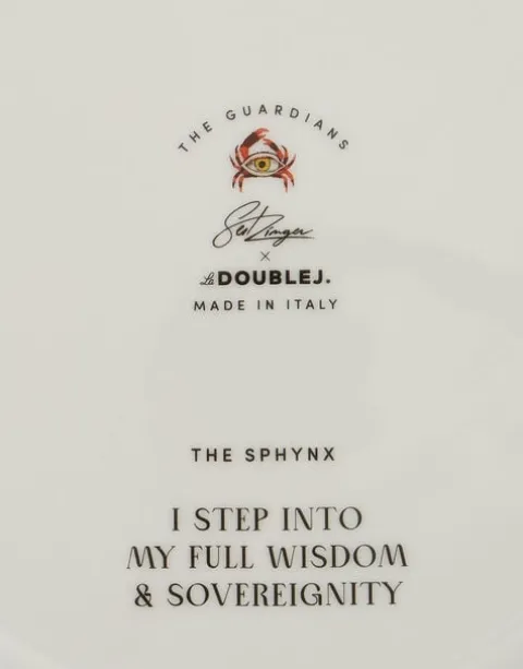 Proud, powerful, and positively brimming with otherworldly inspiration, the Sphynx is the most mysterious of the Guardians in this collection. Often seen as the symbol of the muse, she arrives here in energy-activating color and 18K-gold accents, designed to ignite your creative fire and illuminate your imagination. Whether you mount this beautiful Decorative Plate on the wall as the Italians do, or keep it on your desk to hold your creativity grystals, let the Sphynx steer you toward a more magnetic and magical mood.Crafted in collaboration with Turin-based artist Elisa Seitzinger, the Guardian Collection features five energy-protecting supernatural stewards;The Unicorn; The Sphinx; The Angel; The Dragon: The Mermaid. With intricate hidden symbols lovingly etched, painted or printed onto each piece, these are more than mere beautiful objects – these are vibration-raising, mood-boosting, positivity-bringing happiness generators. Select the specific Guardian that activates your desired energy, or collect all five for maximum cosmic consciousness.If so moved, feel free to use this mantra with your Guardian item: “I step into my full wisdom & sovereignty”