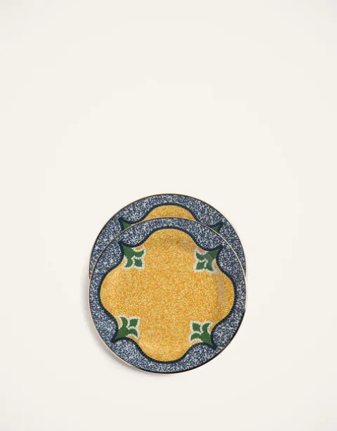Made in collaboration with Italian porcelain greats, Ancap, our Dessert Plates are crafted from fine porcelain with hand painted gold trim. This set of two features a unique vintage print that happy maximalists can pair with our dinner and soup plates, or style as a solo statement to bring a jolly jolt to your white china and plain table. Great for a gorgeous gift, these Dessert Plates do double duty, so snag a few for your salad course or dot around your home as a handy spot for keys or crystals as well.