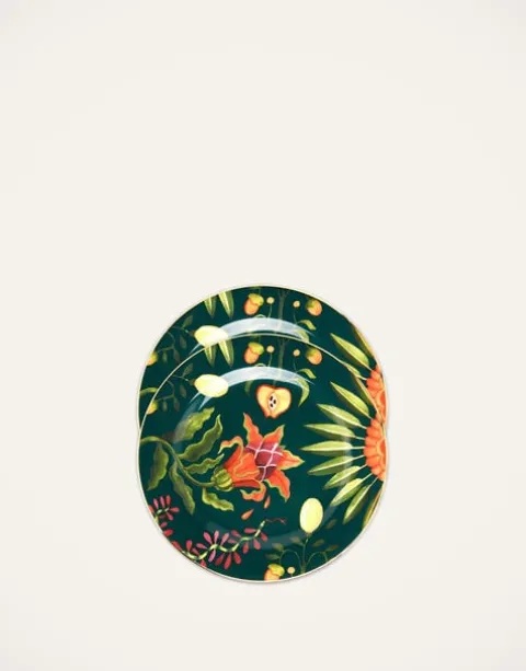 Dine with divinity with this set of two Dessert Plates featuring enchanting artworks to intrigue and inspire. Based on works hand-painted for La DoubleJ, these intriguing surrealist symbols and fantastical florals are inspired by the beauty and beastliness of the 15th Century Italian grotesque. We do love a little highbrow at dinnertime. Each plate is crafted in fine porcelain and finished with 18k gold trims – collect all six designs in the range for your next great gorgeous goddess gathering. These dessert plates do double duty, so snag a few for your salad course or dot around your home as a handy spot for keys or crystals as well.