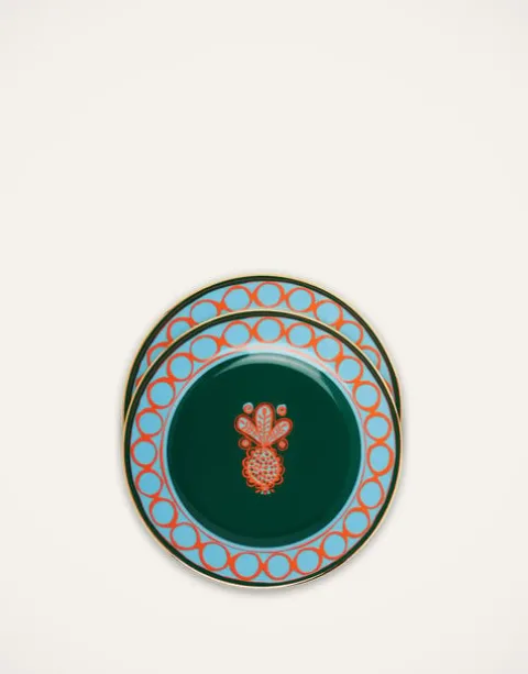 Made in collaboration with Italian porcelain greats, Ancap, our Dessert Plates are crafted from fine porcelain with hand painted gold trim. This set of two features our juicy Pineapple print and if you like a maximalist table (obviously we do) come with the Vase and Tablecloth to match. Great for a gorgeous gift, these plates do double duty, so snag a few for your salad course or dot around your home as a handy spot for keys or crystals as well.