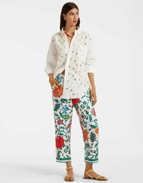 Day-to-night dressing just got supremely easier thanks to these silk twill pants with a drawstring waist, crafted in collaboration with British summerwear wizards, Orlebar Brown. Arriving in our mega vibe-lifting Dragonflower print, this barrel-shape design crops above the ankle and is super versatile cut in our Como-made silk twill. Adjustable so you can wear them high or let them loose after an extra long lunch a la Italiana, wear them to your meditation class, cocktail party, sofa, beach and beyond. This is high vibration vacation-wear at its finest.