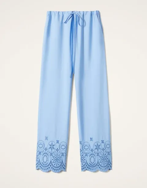 Day-to-night dressing just got supremely easier thanks to these Sangallo lace pants with a drawstring waist. Exuding Italian elegance in this Eclipse print with embroidered details, its barrel-shape design crops above the ankle and is super versatile cut in our Como-made silk twill. Adjustable so you can wear them high or let them loose after an extra long lunch a la Italiana, wear them to your meditation class, cocktail party, sofa, beach and beyond.