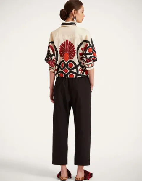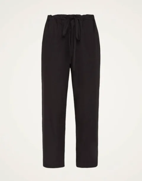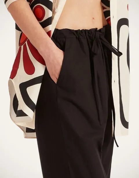 Day-to-night dressing just got supremely easier thanks to these silk twill pants with a drawstring waist. Black is chic no matter the season, particularly in our Como-crafted crisp poplin in this barrel-shape design that crops above the ankle. Adjustable so you can wear them high or let them loose after an extra long lunch a la Italiana, wear them to your meditation class, cocktail party, sofa, beach and beyond.