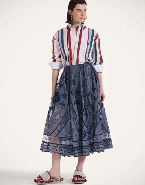 There’s a reason we called this skirt the Duchess – she’s pure royalty crafted from exquisite Starlight Lace (a fabric design that’s exclusive to LA DoubleJ and comes crafted by the oldest lace house in Italy). A full circle skirt in either navy or dark orange, this skirt is ambling-along-the-Arno, espresso-by-the-duomo, canoodling-on-the-Grand-Canal-in-Venice level romantic.