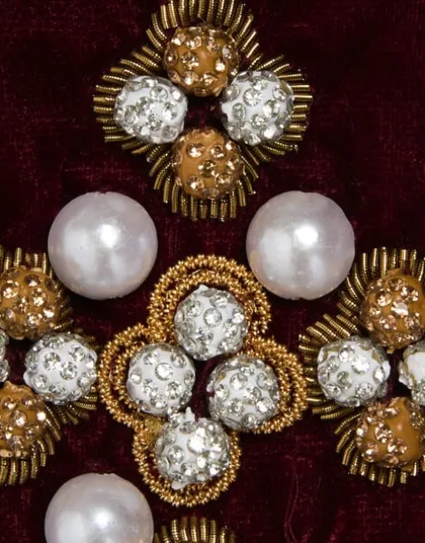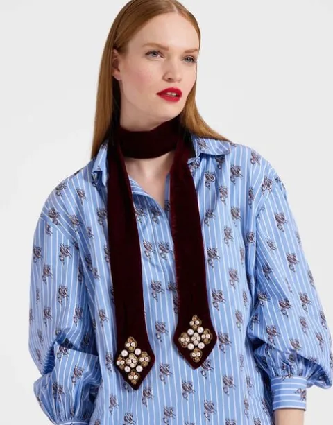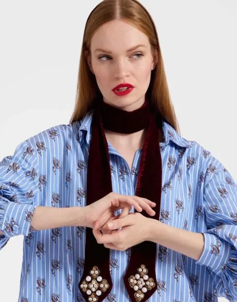 Mamma mia, do we love a little multi-purpose moment. Inspired by the romance of Renaissance accessories, this velvet stole embroidered with pearls can be worn as a foulard around the neck, or an elegant headband, elevating any everyday look to next-level luxury.