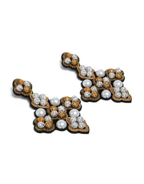 During the Renaissance, jewels were used to convey secret (And sometimes not-so-secret) messages as to the status and appeal of the wearer. Naturally, we took this idea and ran with it, using a similar embroidery technique of the era to craft these pearl studded beauties What to these earrings say about you? That you have exquisite taste, amore.