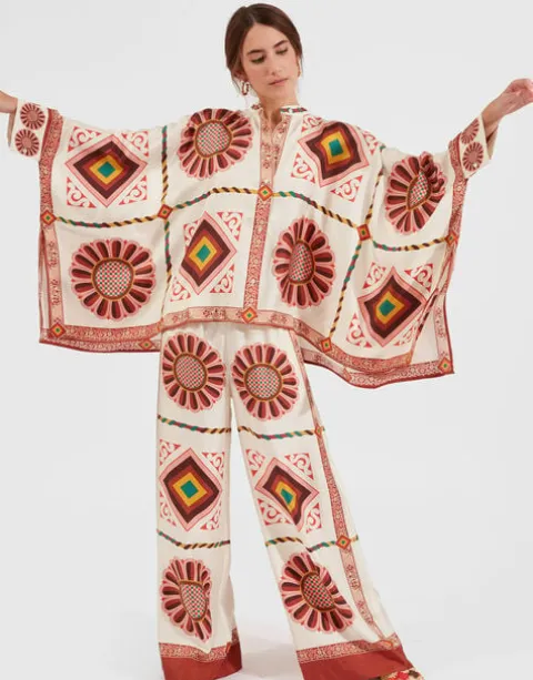 Is it a shirt? Is it a scarf? Actually, this beauty is a little bit of both. We’ve nattily transformed an Italian-made silk square scarf into a shirt design that looks great on all shapes and sizes thanks to its waterfall style fit. The fuss-free silhouette drapes off the arms with a cute Korean collar you can button up or let loose. Turning the elegance dial high is this gorgeous print inspired by Neopolitan tiles and exquisitely placed by hand to fall right every time.