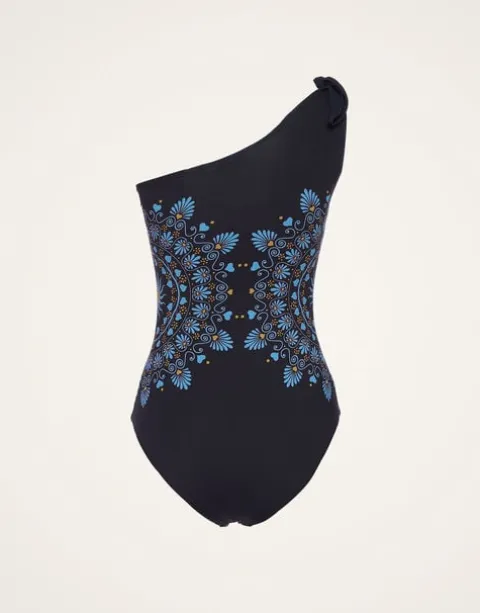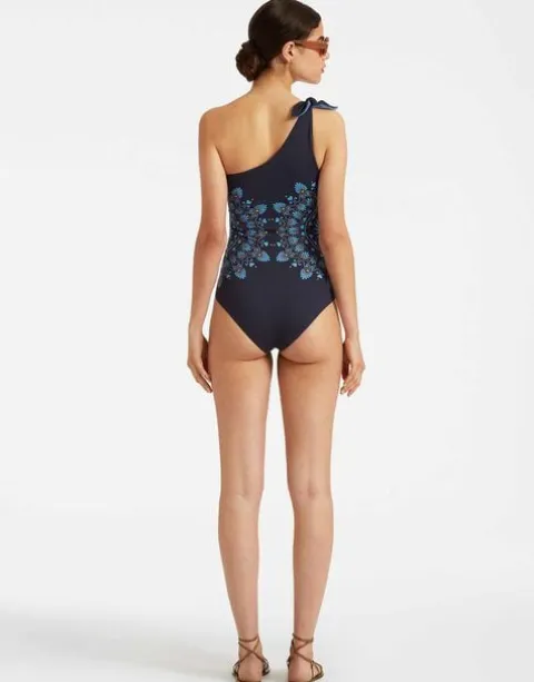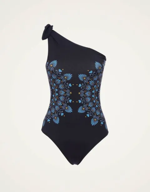 We call this the one-shouldered wonder. This asymmetrical one-piece bather features a single adjustable strap that lets you tie the bow up as tight or as loose as you please, plus another little bow just for show at the hip. Crafted from our Italian Lycra it’s sexy but not skimpy with good coverage over the butt. P.S. If you’re tall, we recommend taking a size up!
