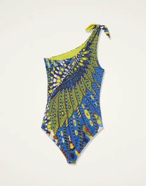We call this the one-shouldered wonder. This asymmetrical one-piece bather features a single adjustable strap that lets you tie the bow up as tight or as loose as you please, plus another little bow just for show at the hip. Crafted from our Italian Lycra it’s sexy but not skimpy with good coverage over the butt. P.S. If you’re tall, we recommend taking a size up!