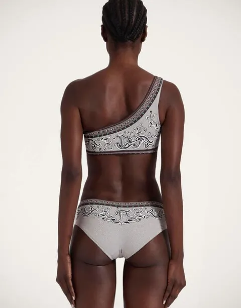 This one-shoulder wonder is our version of the Goddess Suit for you gorgeous girls who like a tummy tan. With a single adjustable strap that lets you tie the bow as tight or loose as you please, it arrives hyper chic in this majestic Mirage print for all your sophisticated beach club moments. Dive in with the Boy Briefs to match.