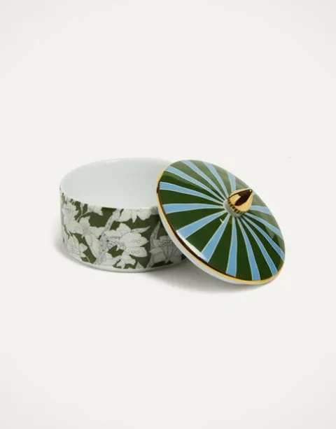 Biscotti stasher, earring holder, bathroom catch-all – this bellissima Goodie Jar really does it all. Crafted from fine porcelain by legendary Italian artisans, it features a hand-painted 18K gold handle and arrives in this gorgeously bold print clash with Dessert Plates and Teacups to match. A delight for any corner of your home.