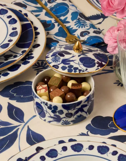 Biscotti stasher, earring holder, bathroom catch-all – this bellissima Goodie Jar really does it all. Crafted from fine porcelain by legendary Italian artisans, it features a hand-painted 18K gold handle and arrives in this gorgeously bold print clash with Dessert Plates and Teacups to match. A delight for any corner of your home.