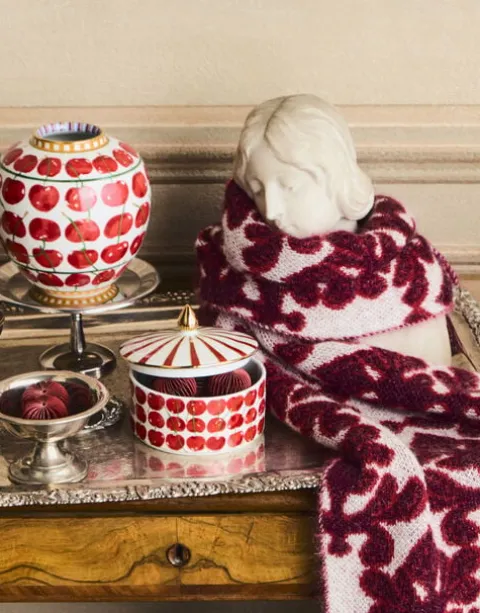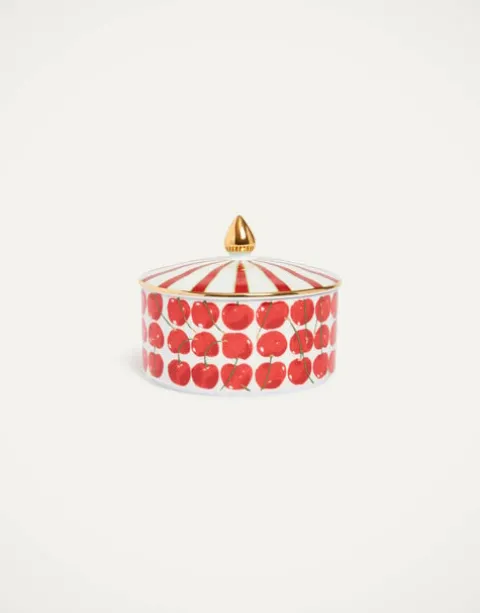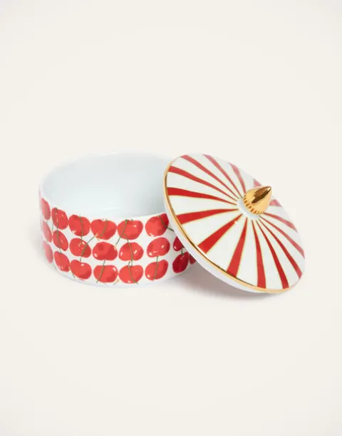 Biscotti stasher, earring holder, bathroom catch-all – this bellissima Goodie Jar really does it all. Crafted from fine porcelain by the Italian greats Ancap, it features a hand-painted 18k gold handle and arrives in our Cherries print with all sorts of soft and porcelain accesories to match. A delight for any corner of your home.