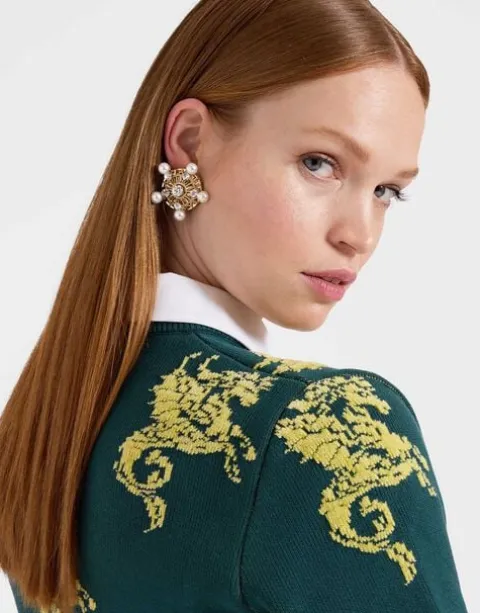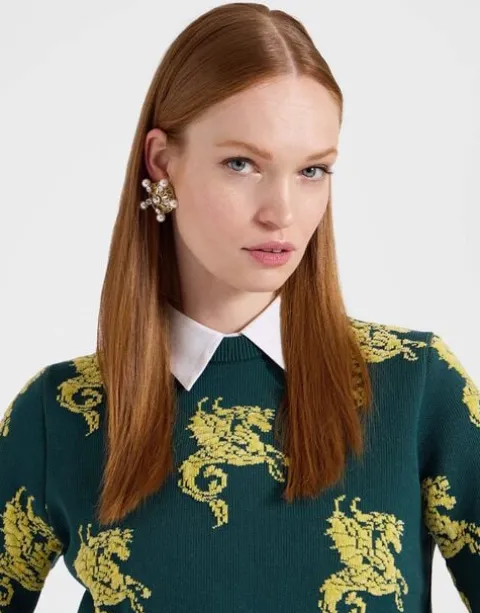 Channel the power of the gryphon – a legendary creature said to symbolise power, courage and prosperity – with the Gryphos Sweater. Crafted in an elegant jacquard and fleece blend, this classic round-necked, slim-fit sweater is as touchable as she is transcendent.