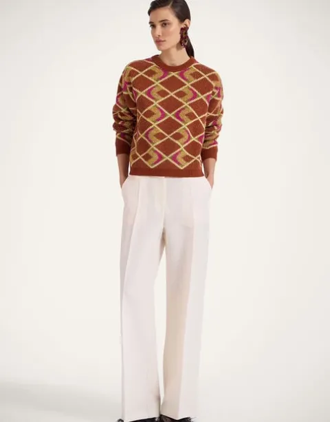 Who said wardrobe basics have to be basic? This classic crewneck is destined to become a backbone of your wardrobe with none of the bore in this happy-making Half-Light print. With a slim silhouette that hits long on the body, it’s crafted in our Italian jacquard which is light but still warm. Wear solo or layer it under one of our printed dresses for a cute pattern clash.