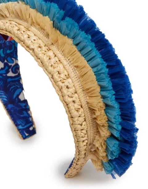 For our LDJ angels, this boho beauty radiates happy serenity handmade with tiers of fringed raffia and a silky structured hairband in our stunning Anemone print. Slide it on for the chicest beachside style at La Fontelina, or pair with our Choux Dress for a quick and cute cocktail look.
