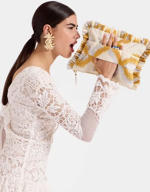 Arriving in upscale jacquard to put the finishing touch to your party look this season, our soft oversized zip pouch is a multi-use beauty that will easily house a cell phone, mini tablet and cardholder. It’s perfect to organize small items in a bigger bag but also works fabulously as a clutch. The side handle makes it super easy to carry around which – great news! – gives you free hands to hold your Bellini at a cocktail party.