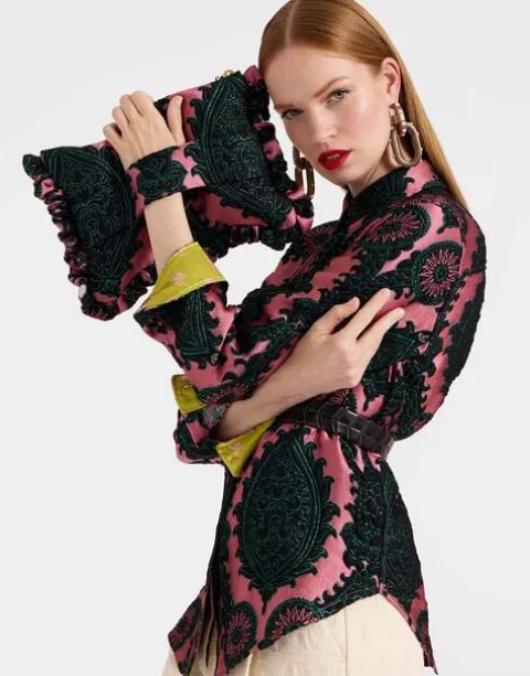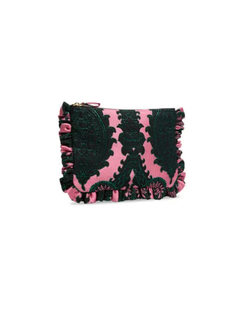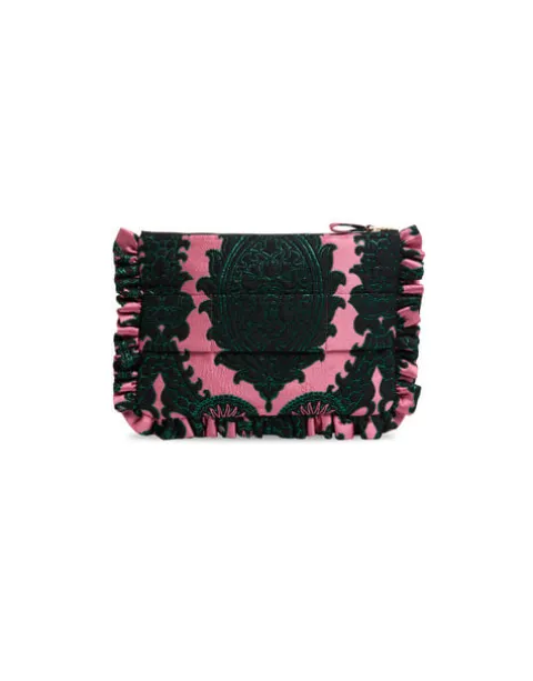 Party season perfection in this glowing jacquard, our soft oversized zip pouch is a multi-use beauty that not only elevates the status of your dinner-to-dancing outfit, but will easily house a cell phone, mini tablet and cardholder. The side handle makes it super easy to carry around which – great news! – gives you free hands to hold your Bellini at a cocktail party.